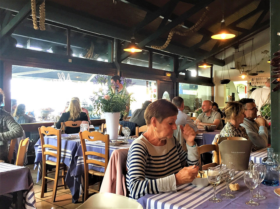 On our second day, we visited this famous old, traditional, seafood restaurant that backs onto the wooded slope overlooking the old fishing port. It is decorated in nautical motifs inside and out, and has a great relaxing summer terrace.